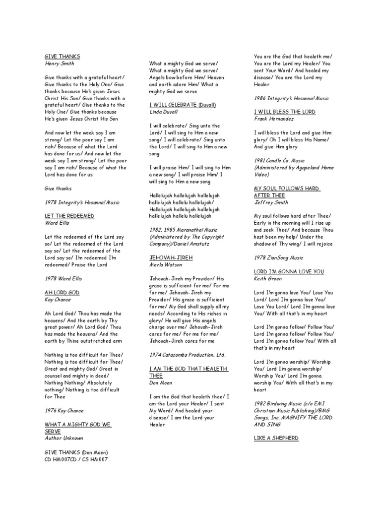 Don Moen Lyrics Give Thanks Faith Healing Jesus from imgv2-2-f.scribdassets.com Oh, everywhere that i go. No one knows the proper away. That you never know what you did to me.